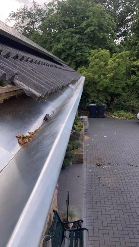 In Emmen staat een vrijstaande woning waarbij de dakgoten gescheurd zijn. Zink is een bijzonder materiaal wat moet kunnen bewegen. Met warmte en koude zet het zink uit of krimpt het juist. Wanneer de dakgoten worden geplaatst door iemand die hier geen rekening mee houdt, kan het zijn dat de goten op de naden vroegtijdig scheuren. Dat was bij deze dakgoten ook het geval.