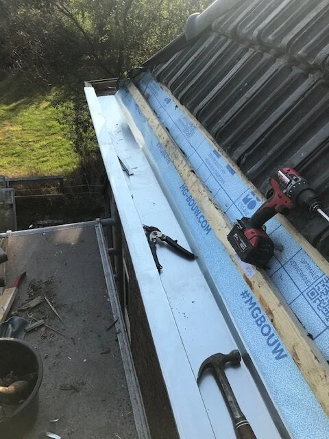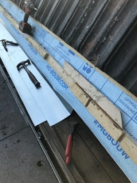 De oude dakgoten zijn eerst verwijderd en daarna zijn de nieuwe gemaakt en geplaatst.